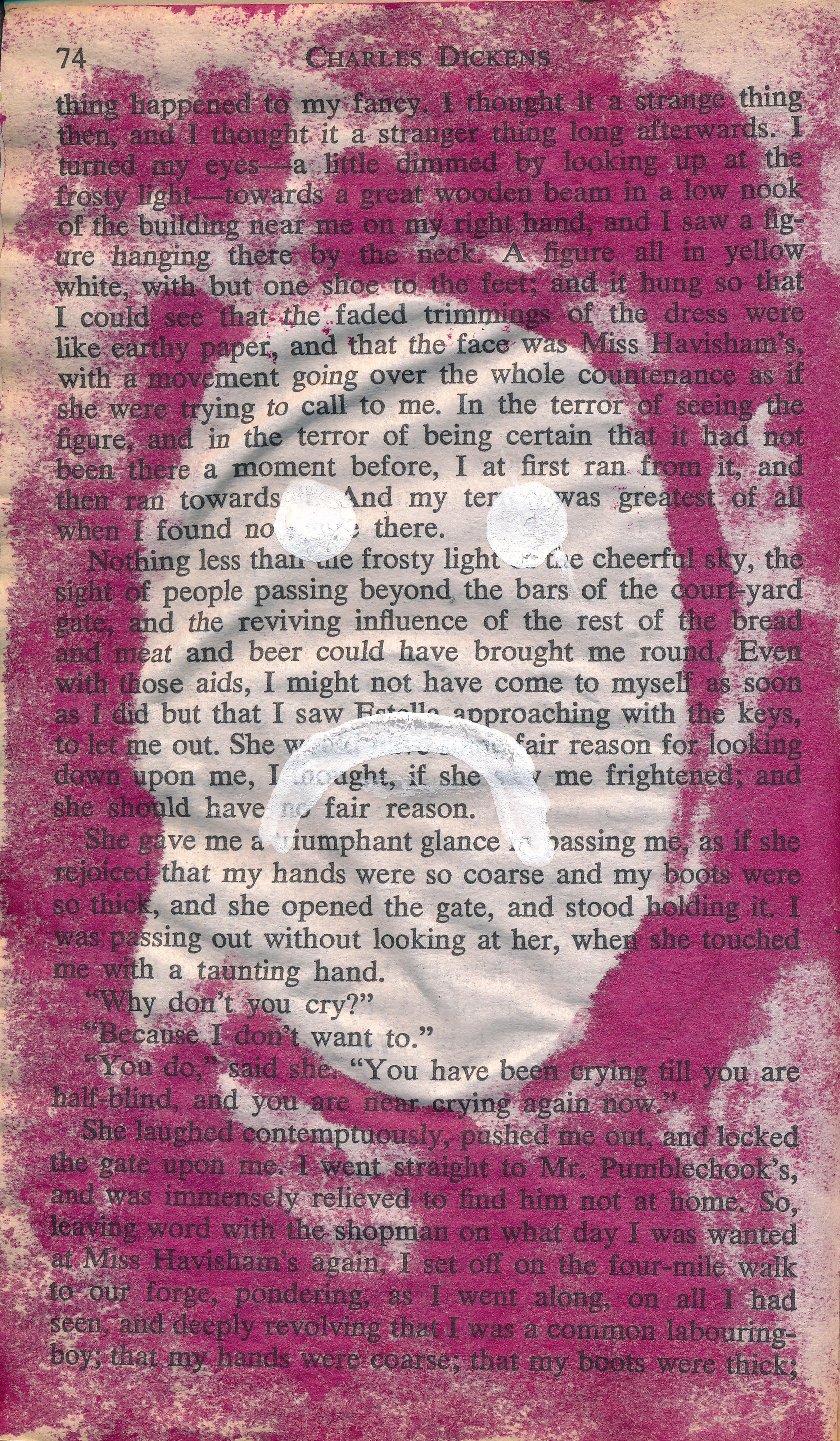 I was inspired by the way Dickens renders Miss Havisham on this page, as a spectral figure from the darkness that would turn to dust under sunlight.